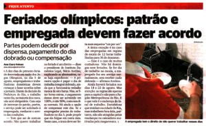 Jornal Extra (26/07/2016) – Feriados olímpicos: empregadores e domésticas devem fazer acordo