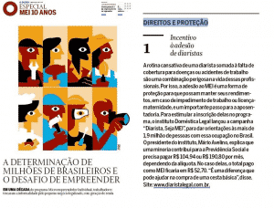 Para estimular a inscrição delas no programa, o instituto Doméstica Legal lançou a campanha “Diarista, Seja MEI”, para dar orientações às mais de 1,9 milhão de pessoas com essa ocupação no Brasil. O presidente do instituto, Mario Avelino, explica: