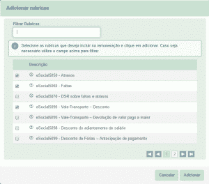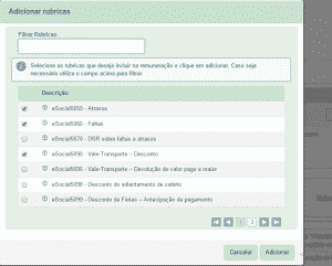 O eSocial apresentará as verbas que foram selecionadas pelo empregador.