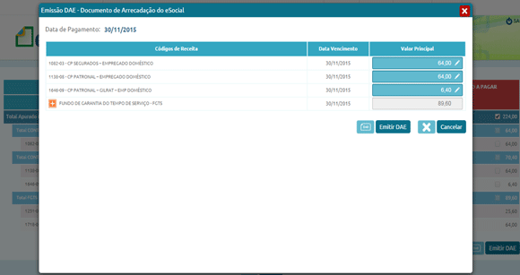 O empregador poderá visualizar os encargos e o valor do DAE (Documento de Arrecadação do eSocial. Se estiver tudo correto deverá clicar em “emitir DAE”.